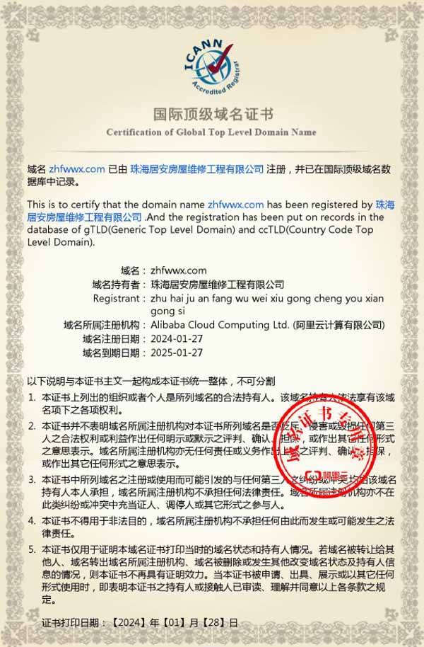 外墻維修工程服務企業資質證書
